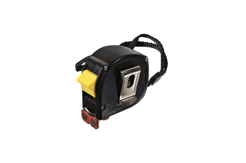 - Мощный магнит служит для мгновенной и прочной фиксации полотна на металлической поверхности. Его можно также использовать для подбора магнитящихся предметов (весом до 0,6 кг) с пола или закрепления рулетки на металлической поверхности для хранения.