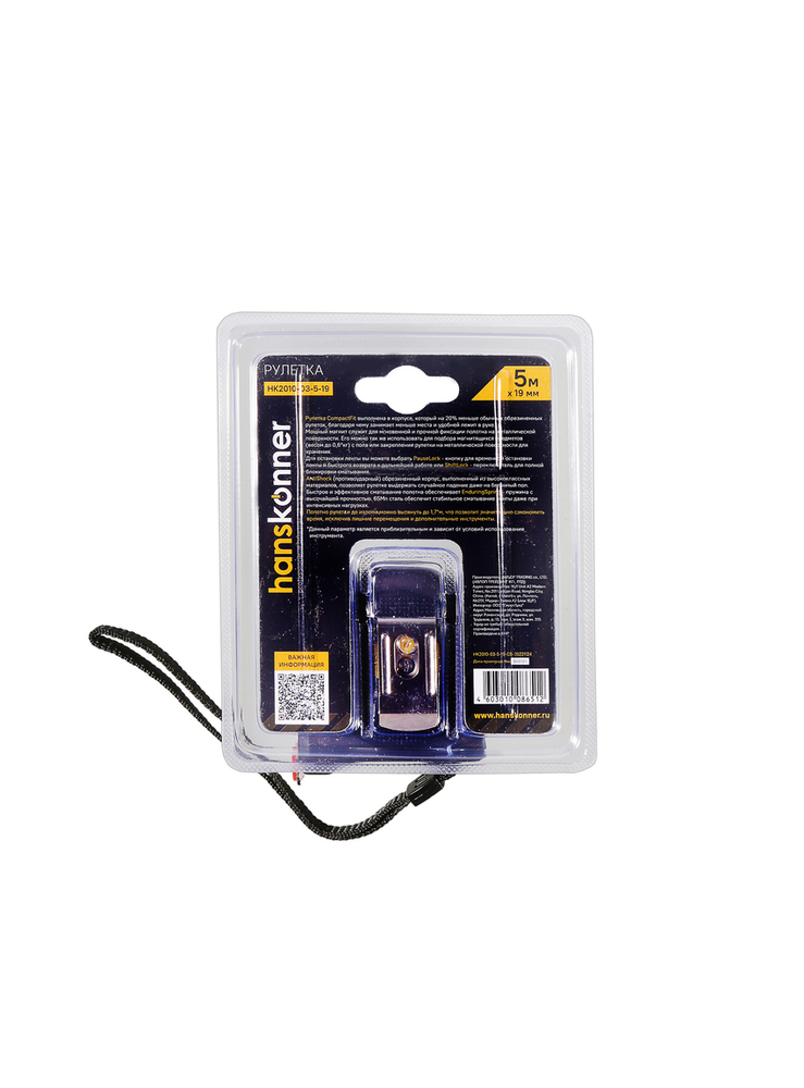 Рулетка 5x19мм, 2 стопа, компактный корпус, мощный магнит, Hanskonner HK2010-03-5-19 — Малогабаритная модель «на все случаи» обеспечивает точность и надежность результатов измерения.