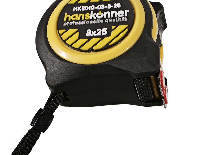 Рулетка 8x25мм, 2 стопа, компактный корпус, мощный магнит, Hanskonner HK2010-03-8-25 — малогабаритная модель, благодаря которой разметочные работы выполняются быстро и точно.