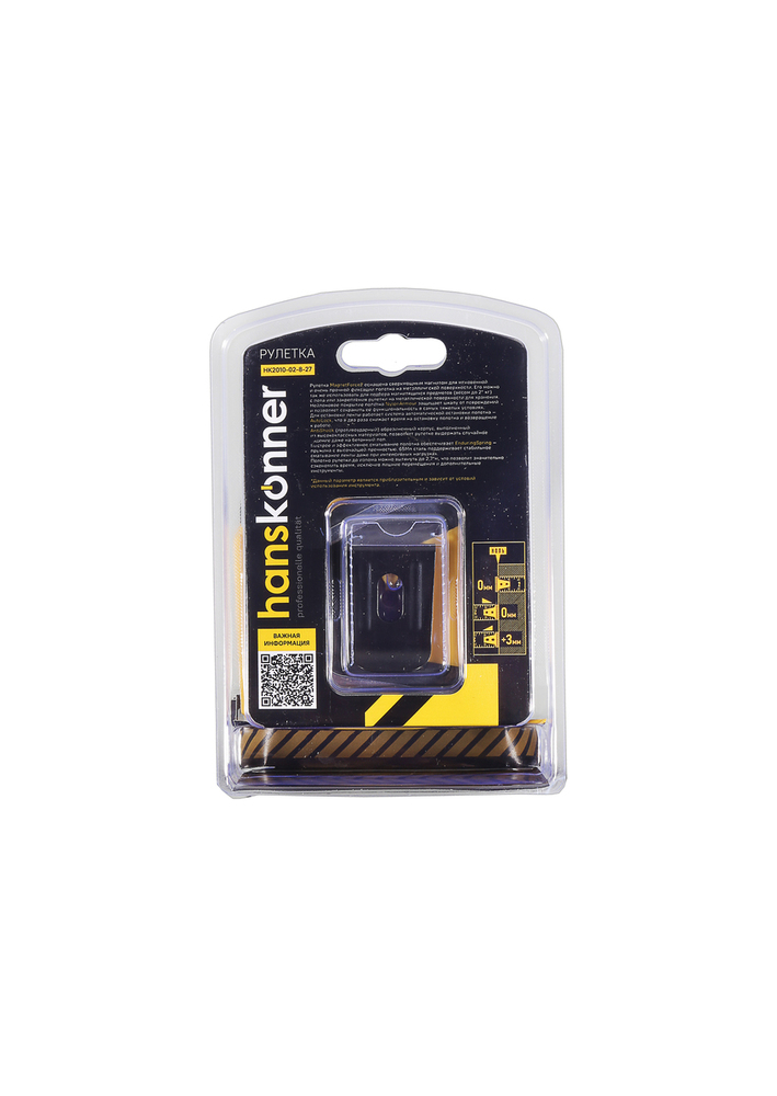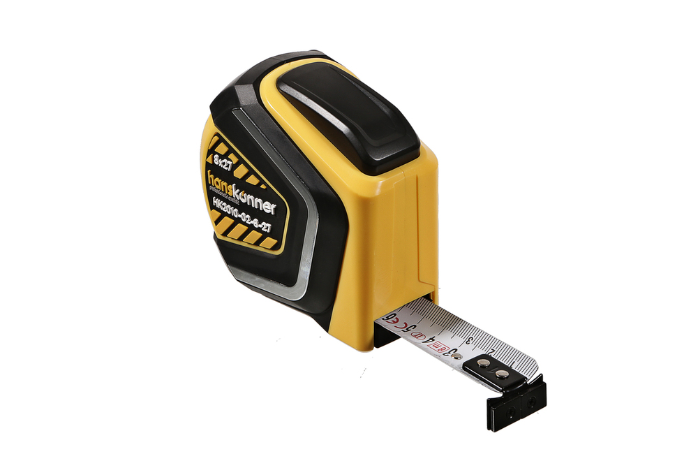 Рулетка 8x27мм, автостоп, двухстор., нейлон, супермощный магнит, Hanskonner HK2010-02-8-27 — удобная в обращении модель, благодаря которой разметочные работы выполняются быстро и точно.