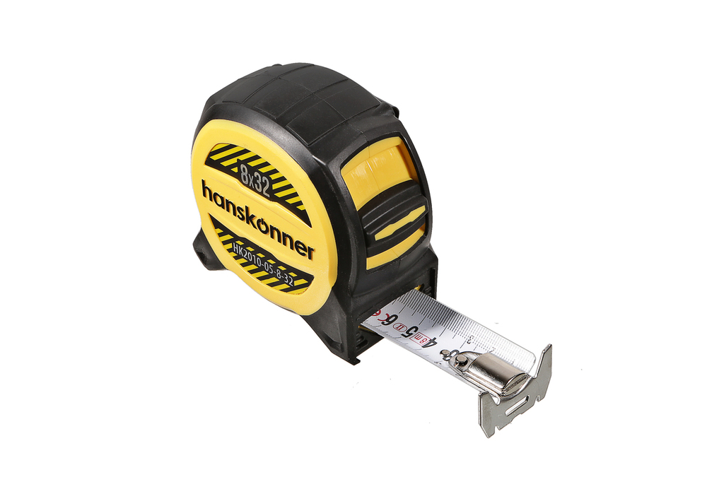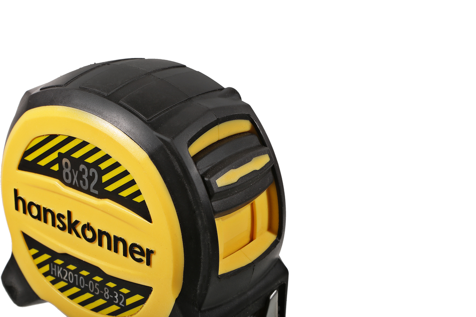Рулетка 8x32мм, двухсторонняя, нейлон, двойной мощный магнит, Hanskonner HK2010-05-8-32 — профессиональная модель с усиленной конструкцией, рассчитанная на интенсивную эксплуатацию и выполнение точных измерений в любых условиях.