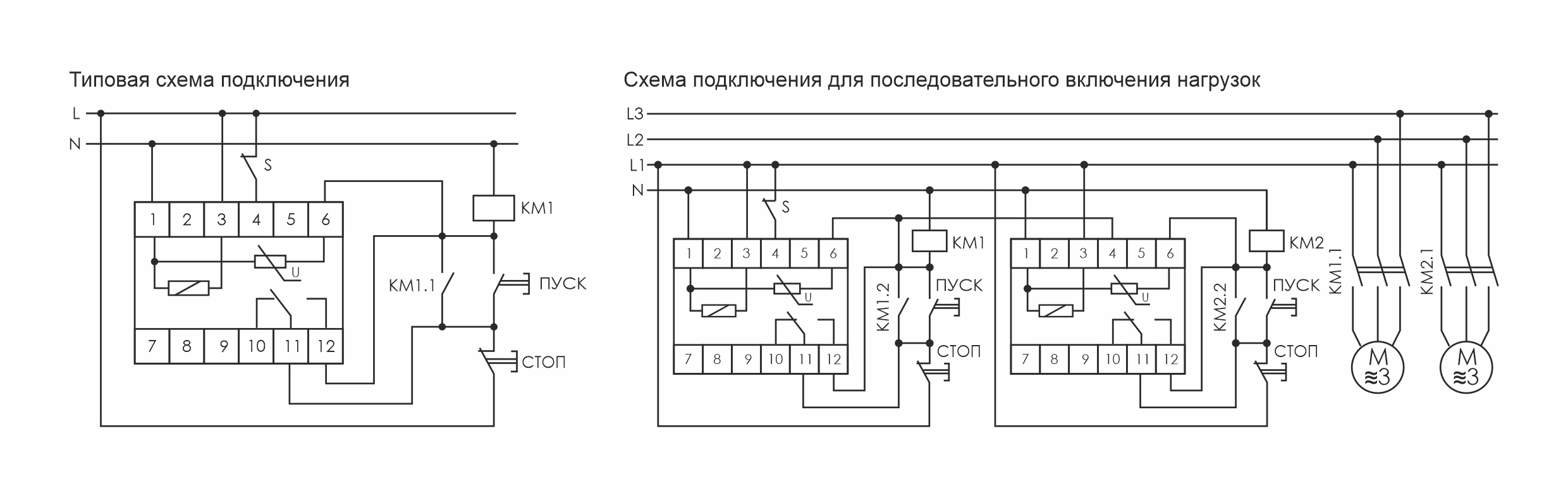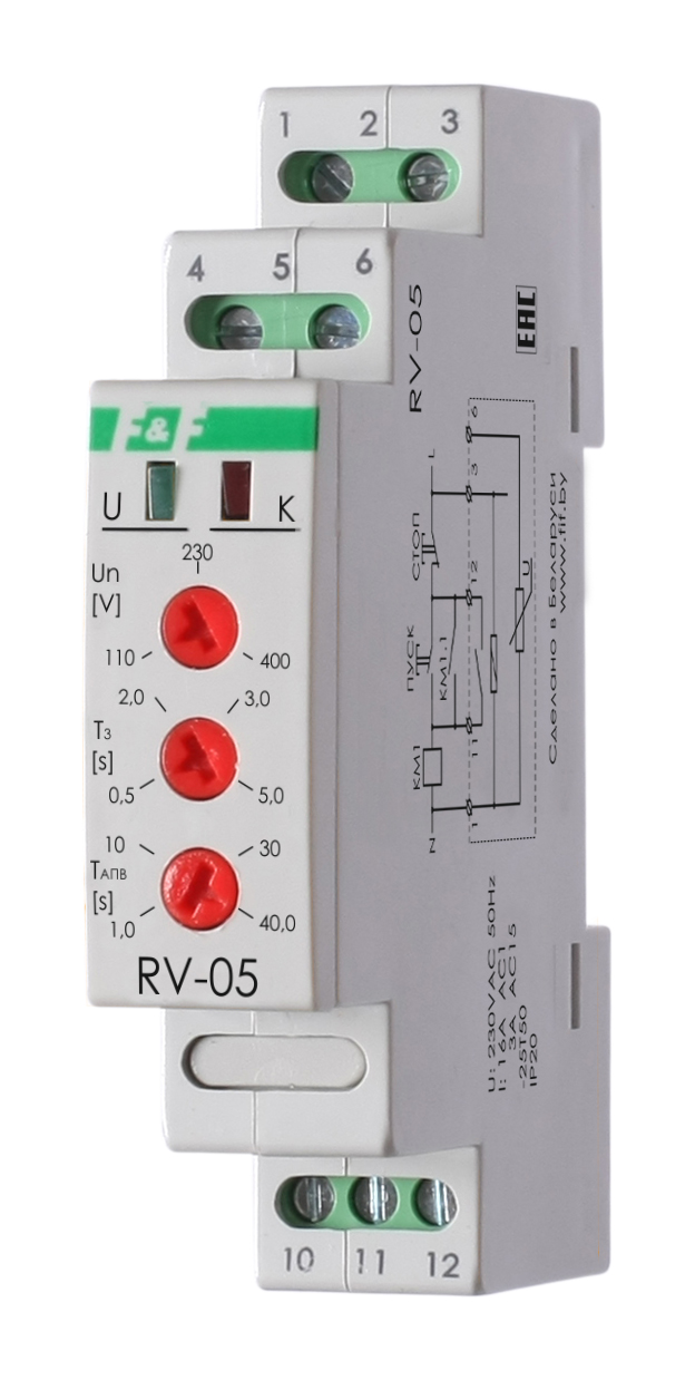 Монтаж на DIN-рейку. Предназначено для повторного включения в работу пускателей и контакторов при отключении из работы после кратковременного (на время переключения АВР или АПВ) отключения или просадки напряжения питания. Принцип работы: при восстановлении питания за промежуток времени меньше заданного («Т3»), если на момент отключения пускатель был включен (на контрольном контакте 6 присутствовало напряжение питания), устройство ожидает появления напряжения на контакте 4 затем начинается отсчет времени восстановления питания («ТАПВ»), по истечении которого производится повторное включение пускателя (кратковременно замыкаются контакты 11–12 на 0,5 с).