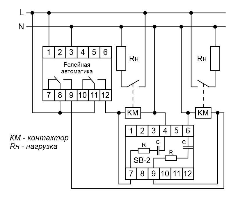 ФСП (RC-снаббер) работает при размыкании контактов реле, отключающих индуктивную нагрузку, подавляет возникающие импульсные перенапряжения, тем самым защищая контакты реле от повреждения.