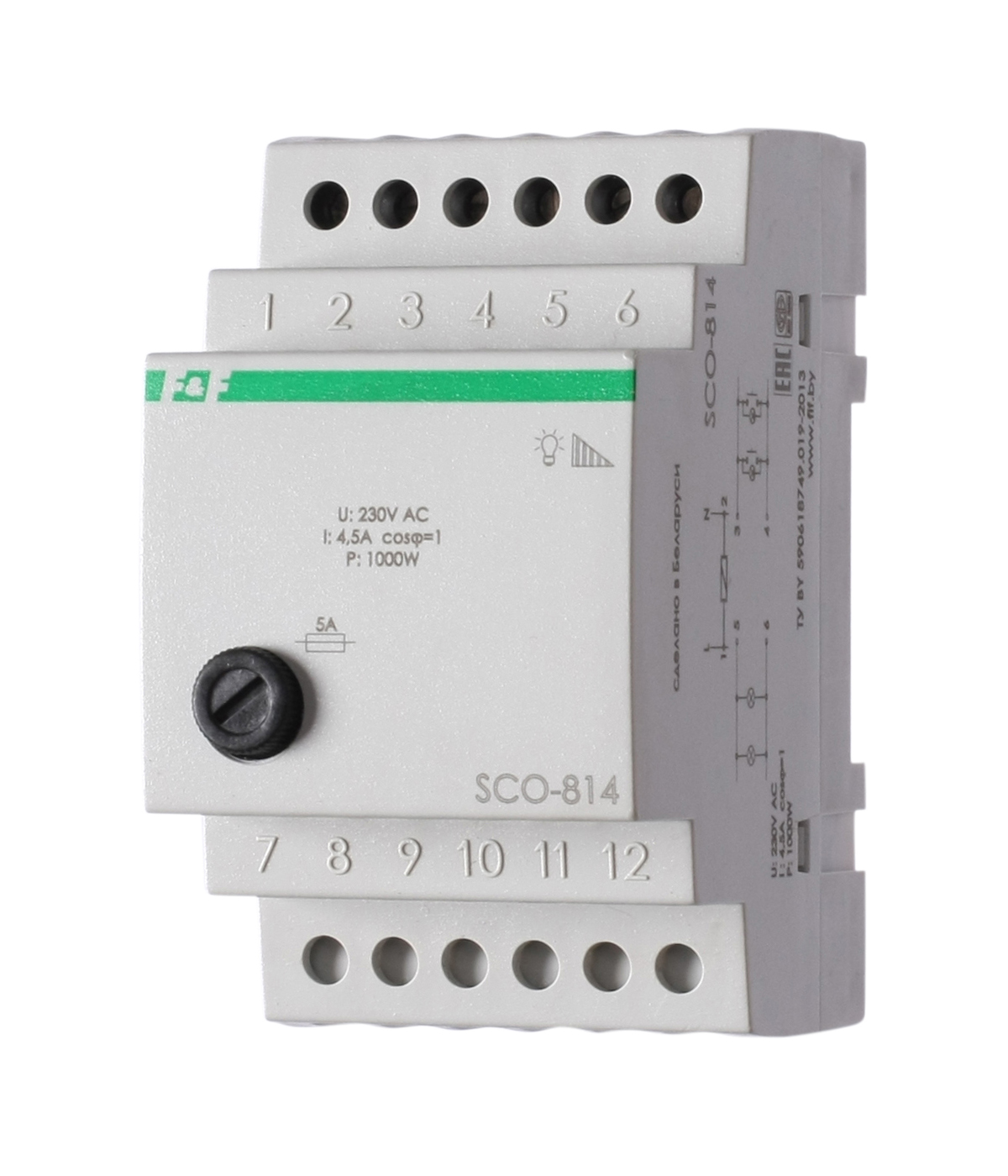 Особенности: для ламп накаливания; встроенный предохранитель на 5 А; функция памяти установленного уровня освещённости; напряжение питания 230 В AC; максимальная мощность ламп 1000 В.