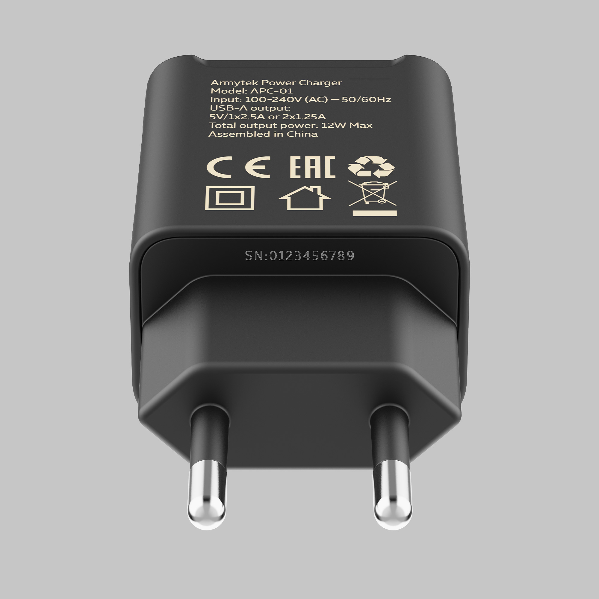 Сетевое зарядное устройство APC-01 A06101 — компактное зарядное устройство с двумя разъёмами USB-A для питания портативных устройств с напряжением 5В и током до 2.5А. Совместимо с устройствами различных типов и работает от сети 100–240В (AC), 50/60Гц.