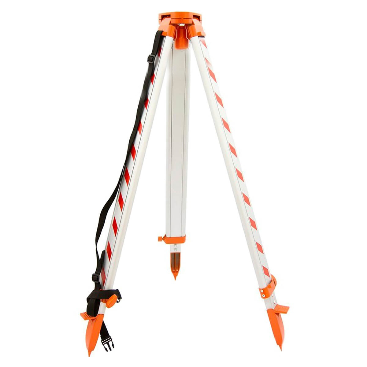 Некоторые элементы конструкции окрашены в яркий оранжевый цвет, а на стойки нанесены контрастные полосы. Такое оформление делает треногу более заметной и повышает безопасность работ на стройплощадке.