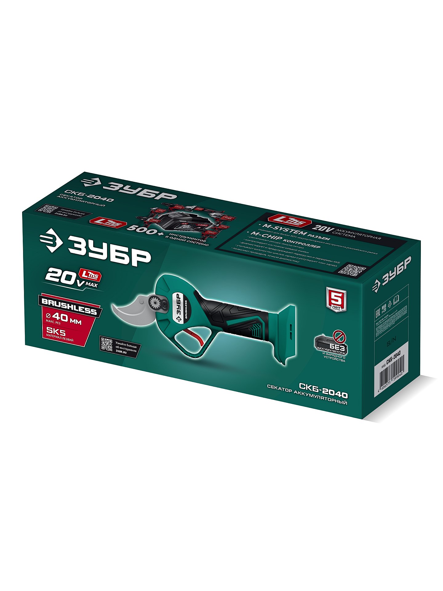 Секатор аккумуляторный ЗУБР 20 В, 40 мм макс. рез, без АКБ (LMS) СКБ-2040 — удобный инструмент для срезания веток кустарников и деревьев.