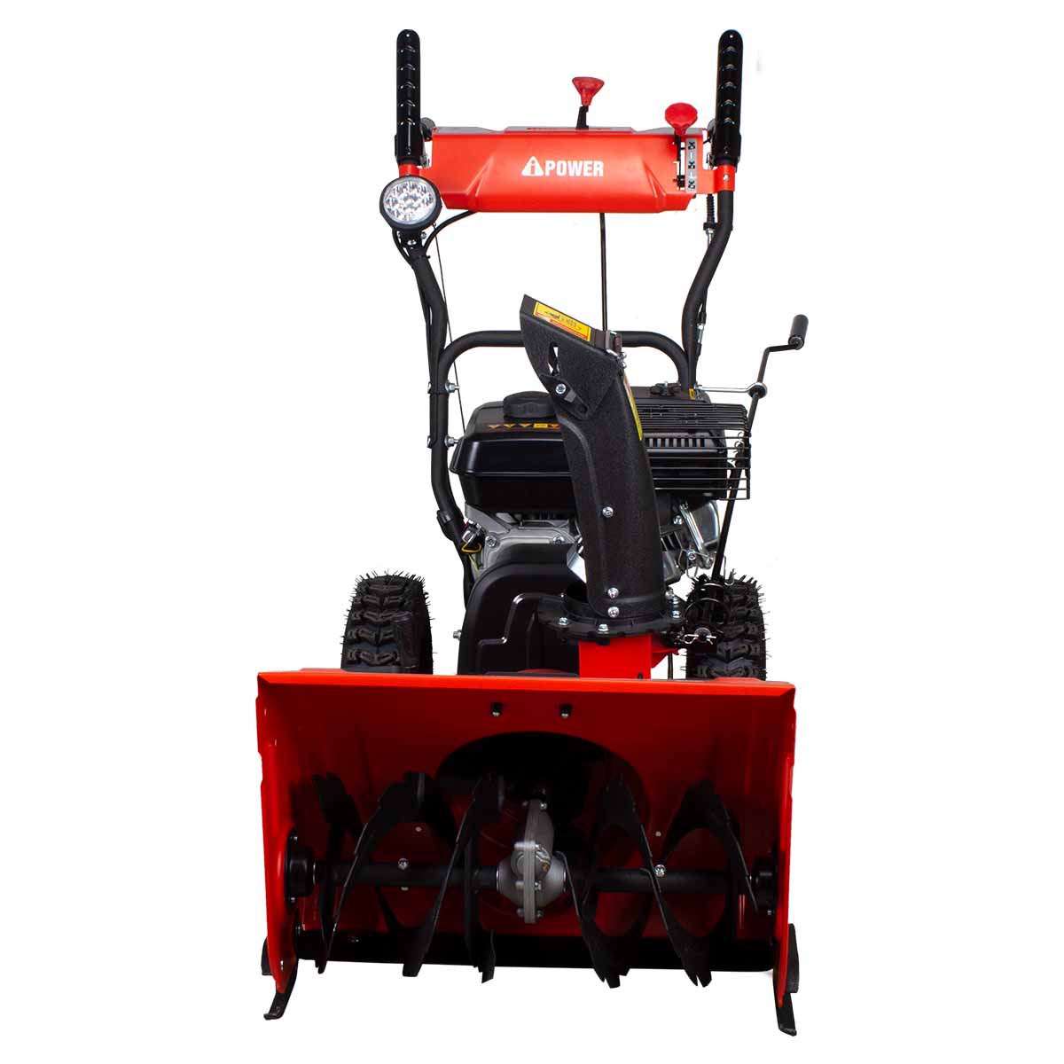 Самоходная бензиновая снегоуборочная машина A-iPower ASF отличное решение для загородного дома, небольшой придомовой территории общественного пользования, парковок, дорожек небольших парков и любых других открытых территорий в зимнее время. Двигатель снегоуборщика объемом 212 сс рассчитан на уверенную работу при температуре до -25 °C. Максимальная ширина захвата снега 56 см и высота до 43 см обеспечивают достаточно оперативную уборку снега при непрерывной работе до 4,5 часов. Дальность выброса снега до 12 метров позволяет наводить порядок даже после длительных и обильных снегопадов.