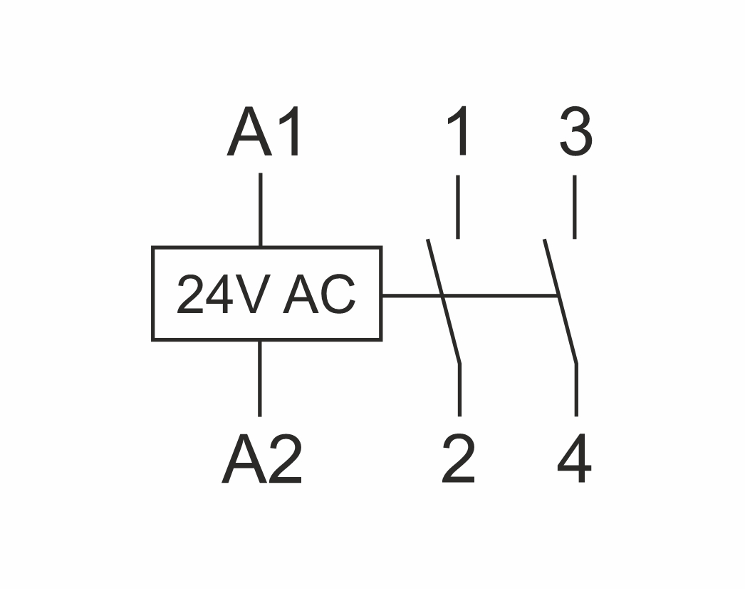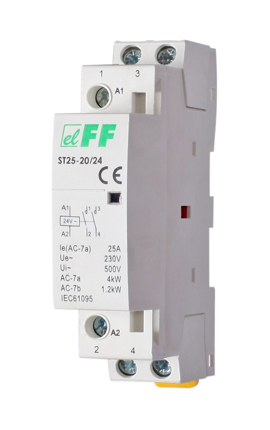 Особенности: напряжение питания - 24 В AC; максимальный ток нагрузки - 25 А; контакты - 2NO.