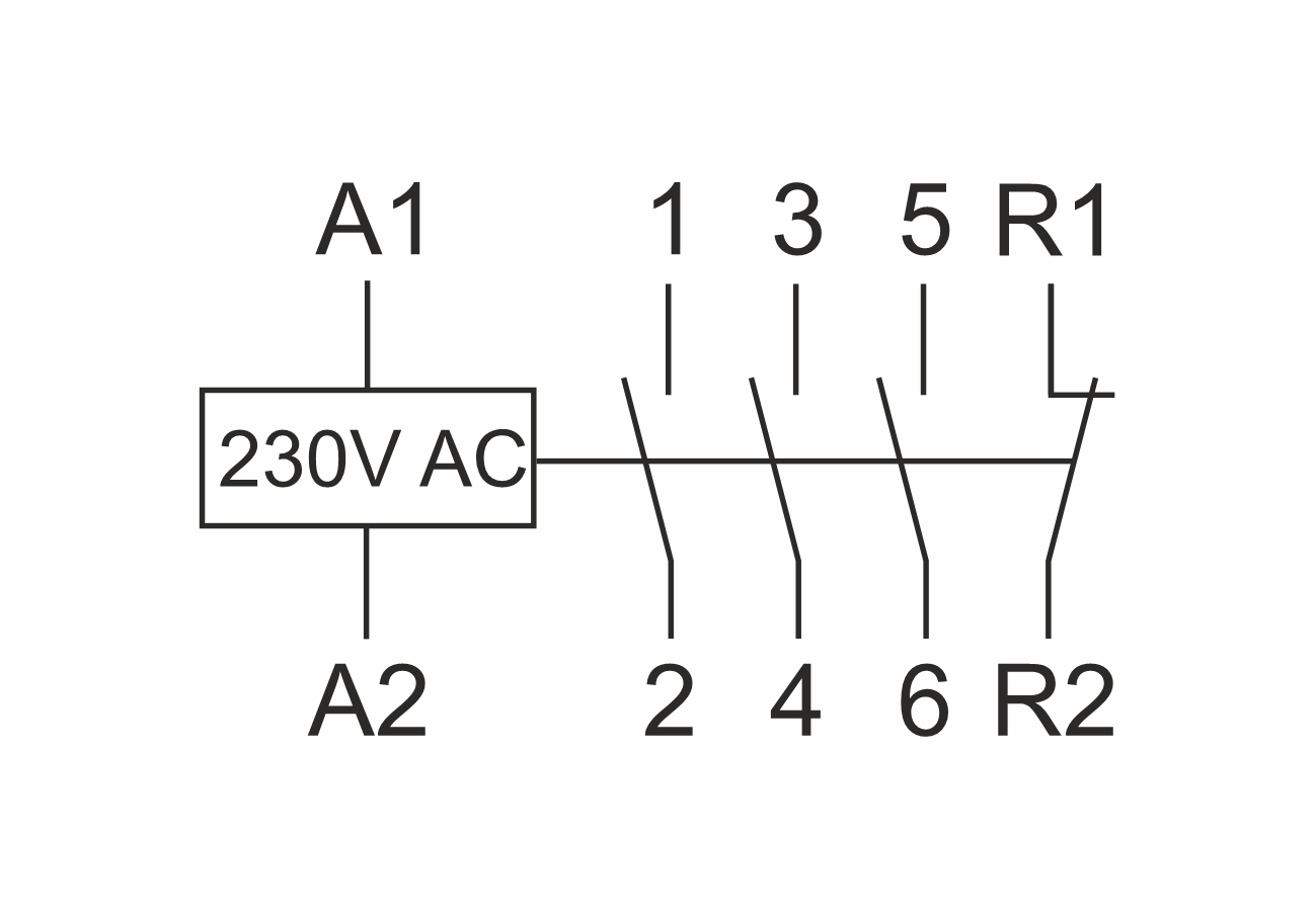 Особенности: напряжение питания -230 В АС; максимальный ток нагрузки - 25 А; контакты - 3NO+1NC.
