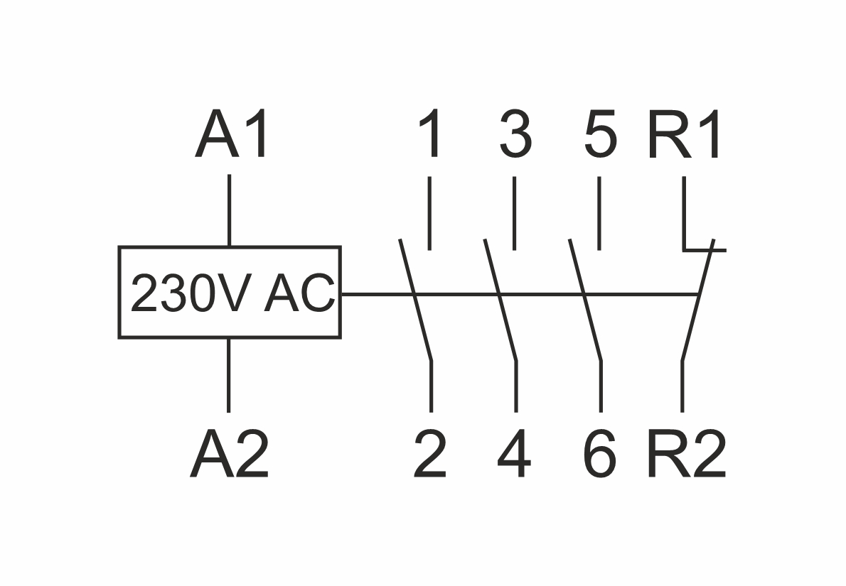 Особенности: напряжение питания -230 В АС; максимальный ток нагрузки - 63 А; контакты - 3NO+1NC.