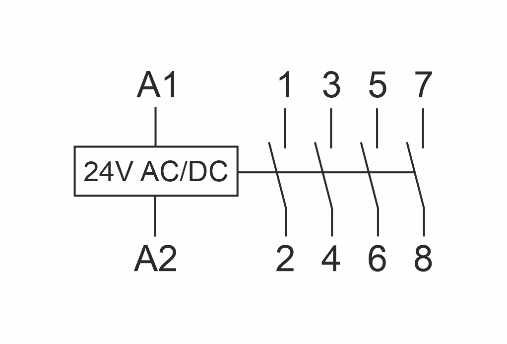 Особенности: напряжение питания -24 В AC/DС; максимальный ток нагрузки - 63 А; контакты - 4NO.