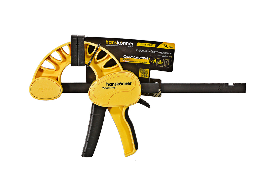 Струбцина быстрозажимная, 150мм, 180-200кгс, сжим-разжим, hanskonner HK1078-08-15 — применяется для прижима деталей друг к другу или любой поверхности для последующей обработки.
