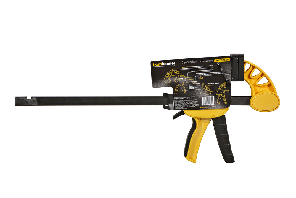 Струбцина быстрозажимная, 300мм, 180-200кгс, сжим-разжим, hanskonner HK1078-08-30 — применяется для прижима деталей друг к другу или любой поверхности для последующей обработки.