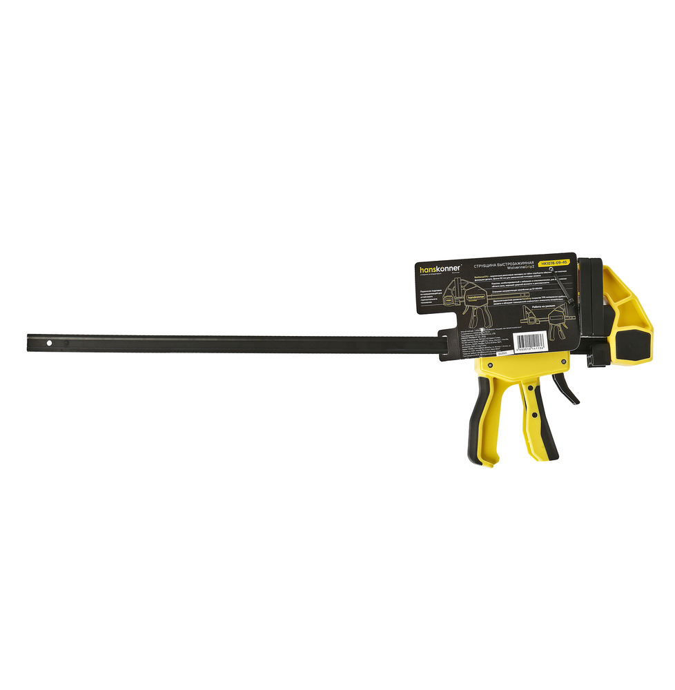 Струбцина быстрозажимная, 450мм, 300кгс, сжим-разжим, hanskonner HK1078-09-45 — применяется для прижима деталей друг к другу или любой поверхности для последующей обработки.