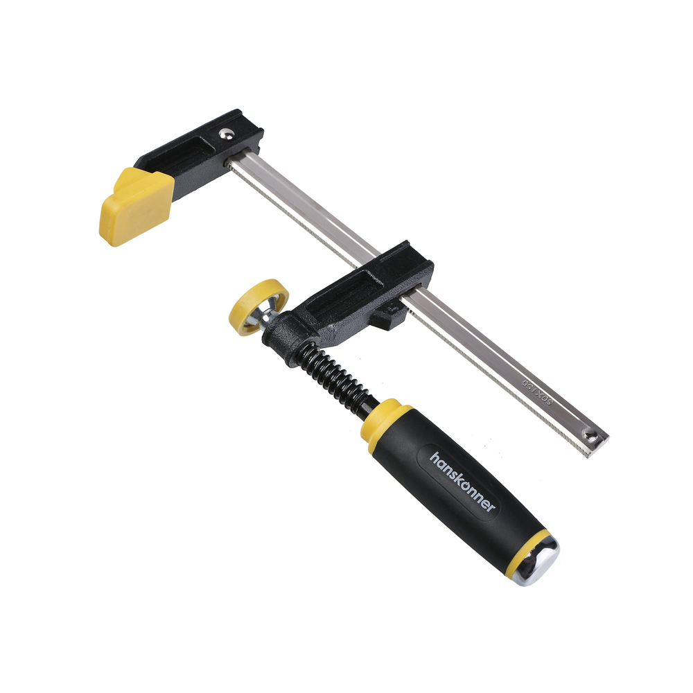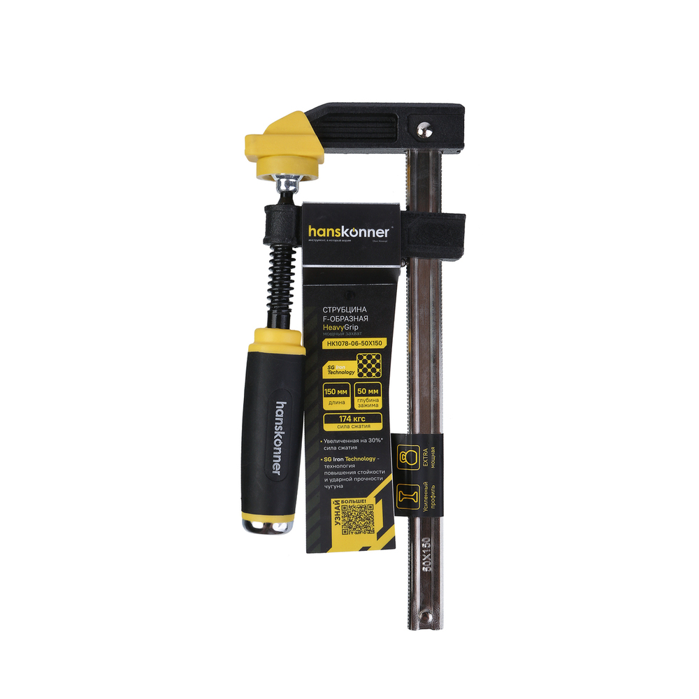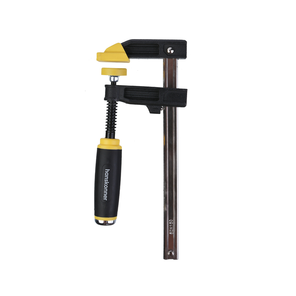 Струбцина F-образная, 50 х 150 x 255 мм, усилие 174кгс, hanskonner HK1078-06-50X150 — позволяет сжимать детали с большим усилием для их последующей обработки.