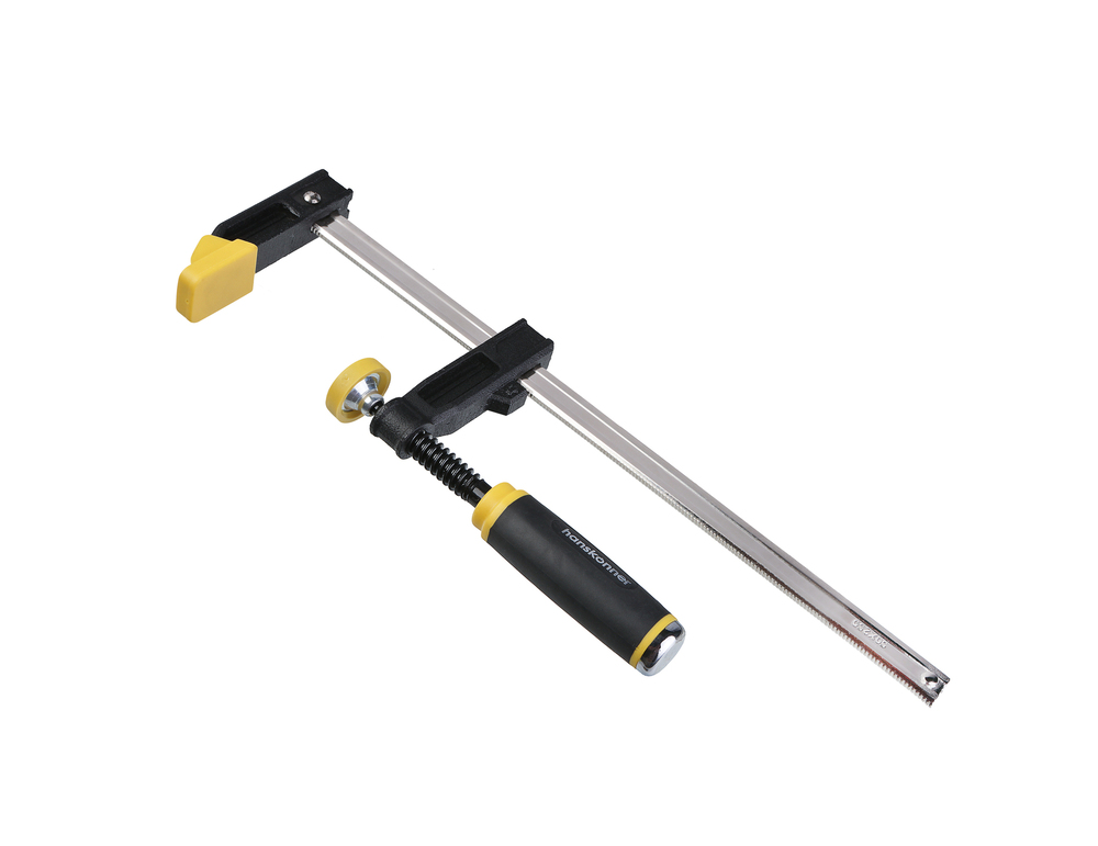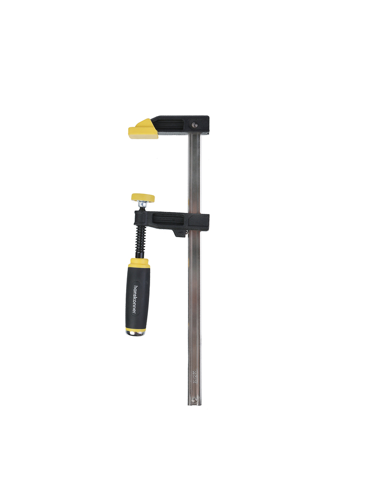 Струбцина F-образная, 50 х 250 x 255 мм, усилие 174кгс, hanskonner HK1078-06-50X250 — позволяет сжимать детали с большим усилием для их последующей обработки.