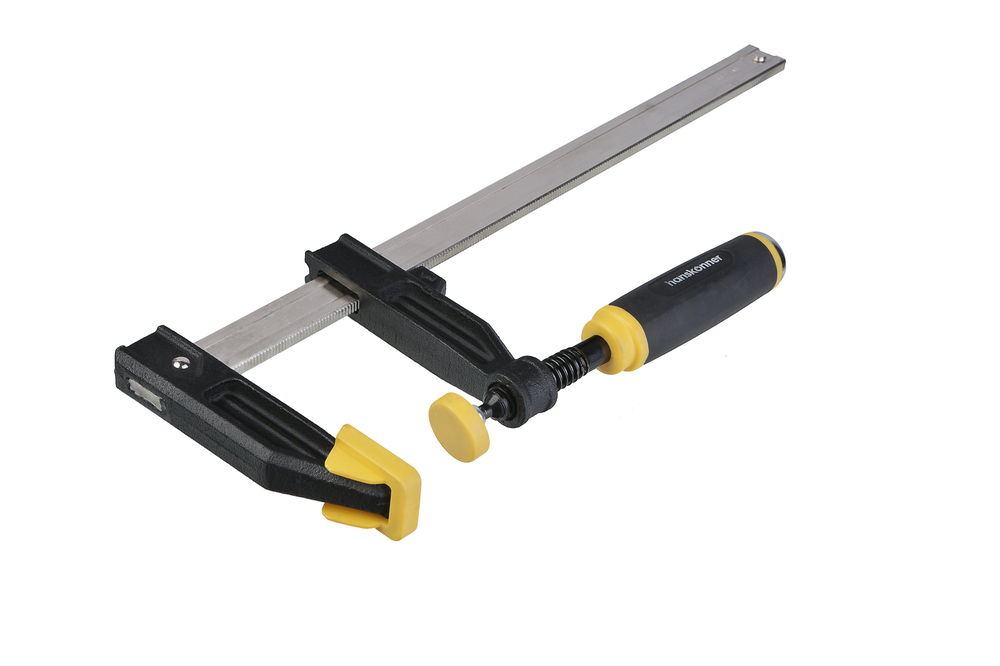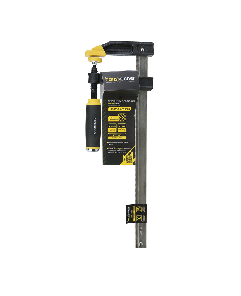 Струбцина F-образная, 80x300x370мм, усилие 275кгс, hanskonner HK1078-06-80X300 — позволяет сжимать детали с большим усилием для их последующей обработки.