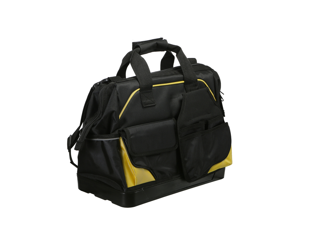 - Дополнительные вставки в стенки и дно сумки позволяют ей лучше держать эргономичную форму при переноске инструментов.