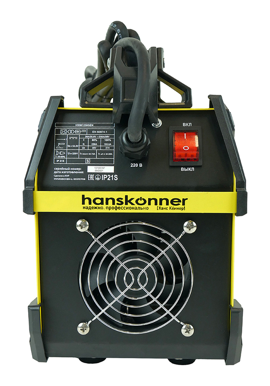 Сварочный инвертор Hanskonner HWM1250GEN. Однофазный, переносной, вентилируемый инвертор для ручной сварки со всеми видами электродов, простым управлением и универсальным подключением.