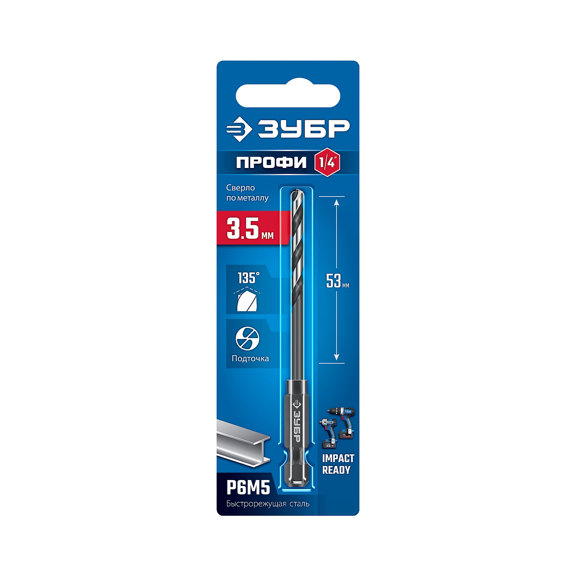 Сверло по металлу для винтовёртов и шуруповертов IMPACT READY ЗУБР НЕХ-1/4″, d 3.5 х 88 мм 29623-3.5_z01 - предназначено для обработки легированных и углеродистых сталей с пределом прочности до 900Н/мм^2, цветных металлов, серого чугуна и пластмассы.