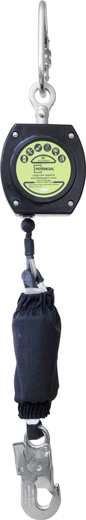 Используемый механизм втягивания троса уменьшает глубину возможного падения, осуществляет быструю блокировку, уменьшая нагрузку и риск получения травмы при падении.