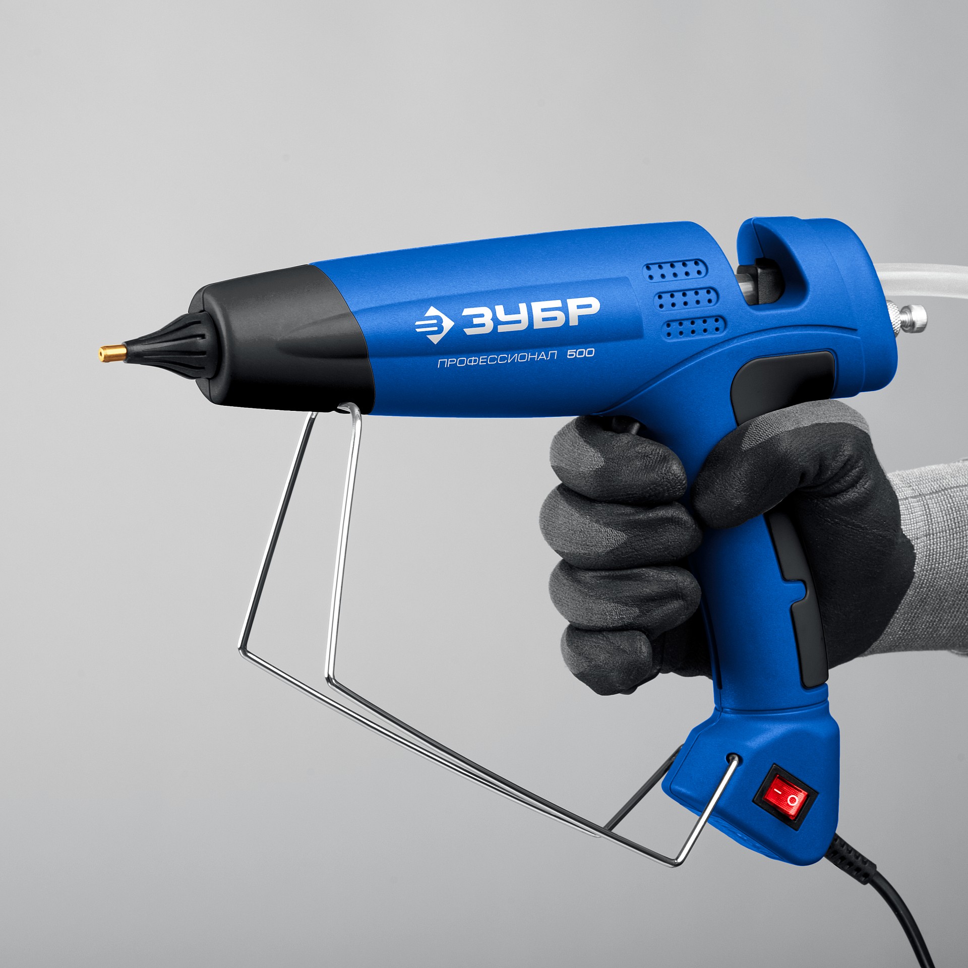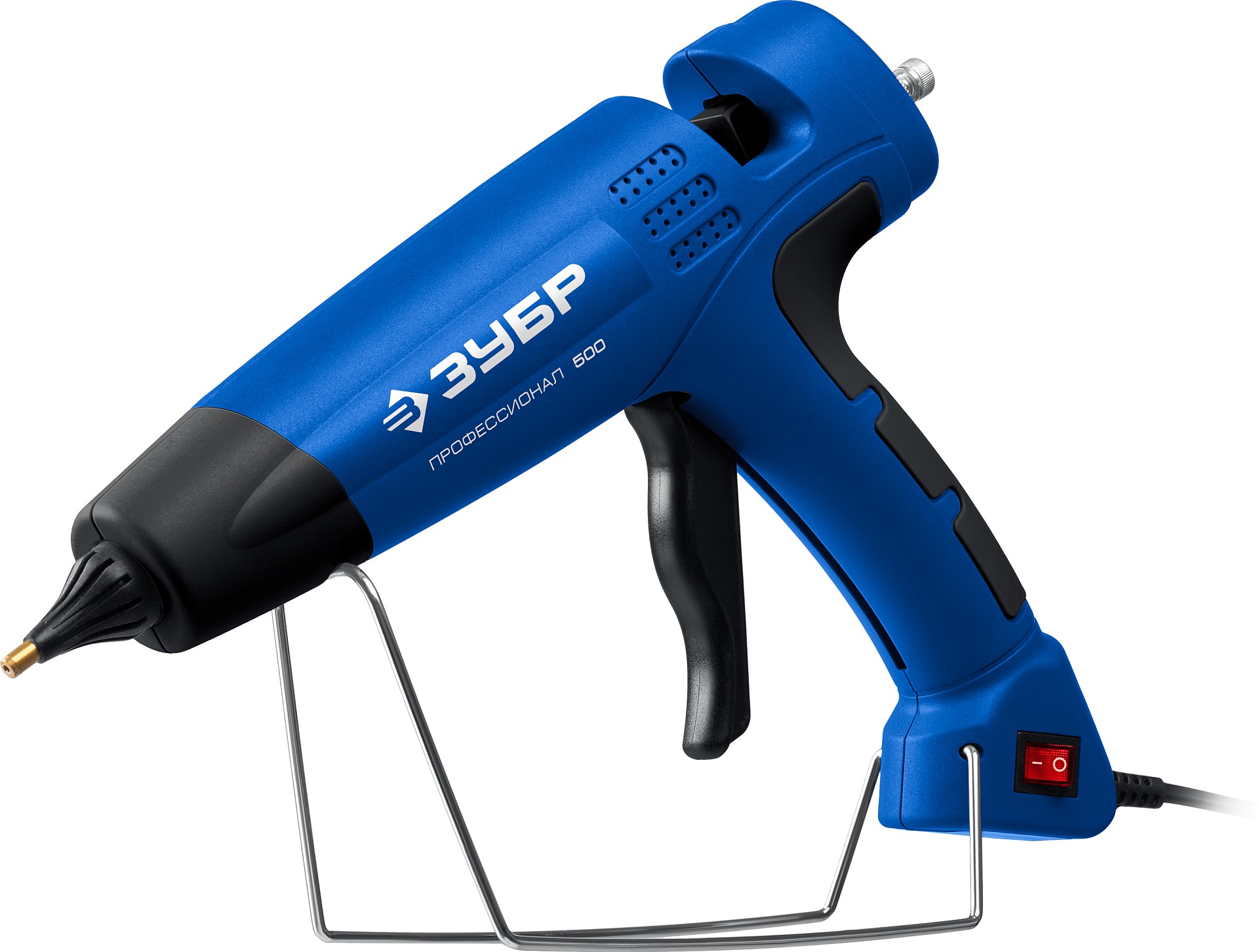Клеевой пистолет ЗУБР 06859-11, применяется для склеивания различных материалов: древесины, металла, керамики, стекла, пластмассы, кожи, ткани при помощи разогретого клея.