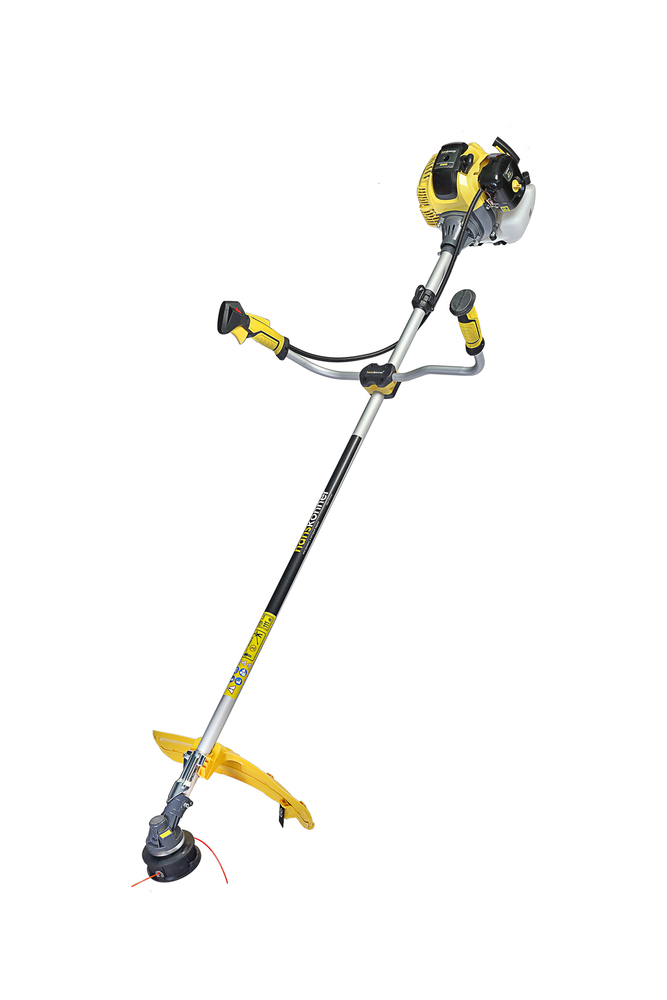 Данный триммер оснащен 4-х тактным двигателем, что упрощает его использование- экономичный расход топлива, низкий уровень шума и значительное снижение износа комплектующих, а также отсутствие необходимости приготовления бензо-масляной смеси.