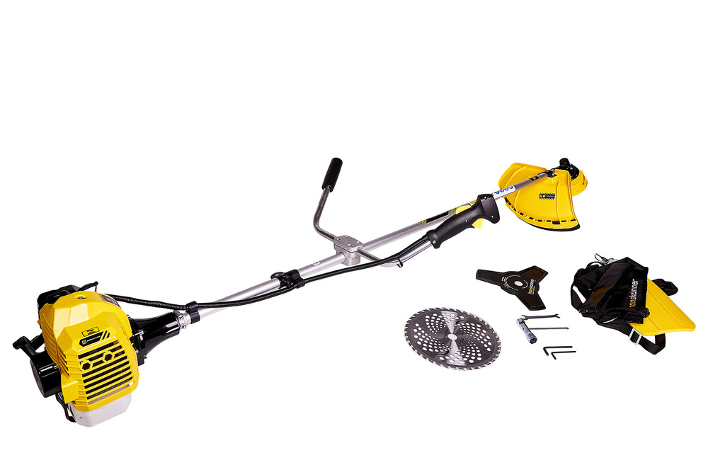 - Модель оснащена производительным бензиновым двухтактным двигателем HighPerformance рабочим объемом 51.7 см3, прямой неразъемной штангой с высокопрочным валом внутри, способным передавать значительный крутящий момент и мощным редуктором – все это позволяет эффективно использовать инструмент с различными типами режущей оснастки, включая не только косильные головки, но и металлические ножи, и фрезы, а также культиваторные насадки.