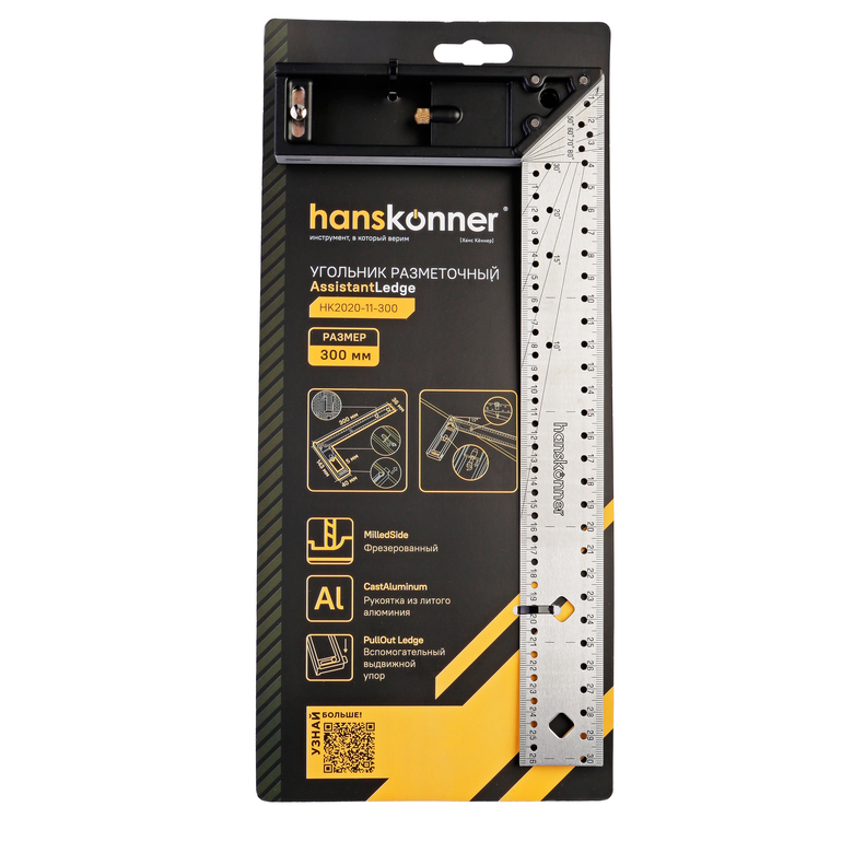 Угольник разметочный, 300мм, выдвижной упор, чертилка, HK2020-11-300 — предназначен для замера и разметки углов.