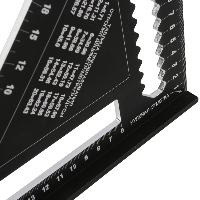 - Максимум функций, совмещённых в одном угольнике. 5 в 1: угольник, торцовочный угольник, транспортир, рейсмус, направляющая для пилы.