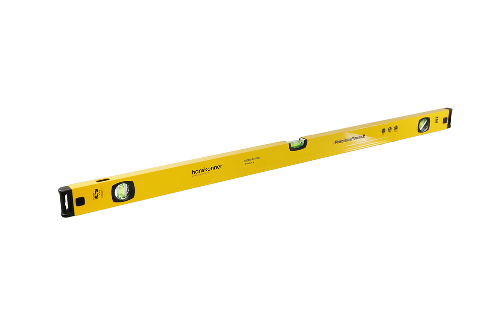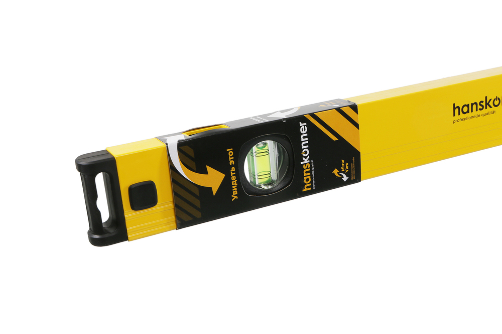 Уровень 1000 мм, фрезеров., 3 глазка (1 зеркальн.), точн. 0.5мм/м, Hanskonner HK2015-02-1000 — применяется для оценки соответствия поверхностей вертикальной или горизонтальной плоскости, а также для измерения углового отклонения поверхности от горизонтали или вертикали.
