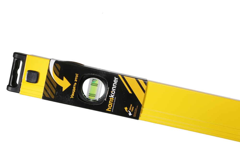 Уровень 1200 мм, фрезеров., 3 глазка (1 зеркальн.), точн. 0.5мм/м, Hanskonner HK2015-02-1200 — применяется для оценки соответствия поверхностей вертикальной или горизонтальной плоскости, а также для измерения углового отклонения поверхности от горизонтали или вертикали.