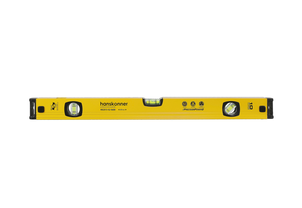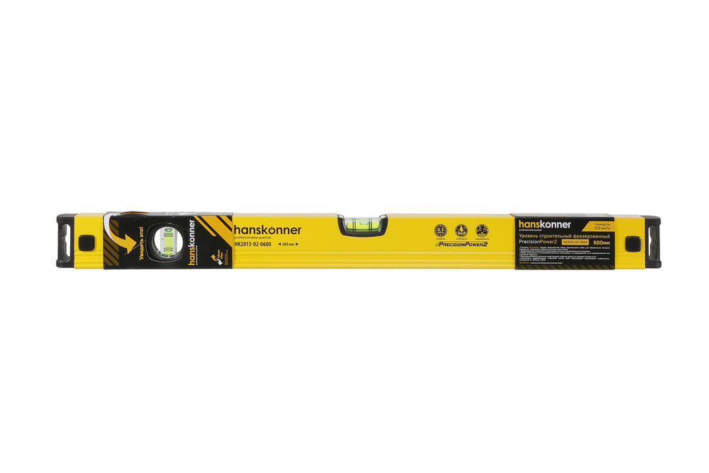 Уровень 600 мм, фрезеров., 3 глазка (1 зеркальн.), точн. 0.5мм/м, Hanskonner HK2015-02-0600 — применяется для оценки соответствия поверхностей вертикальной или горизонтальной плоскости, а также для измерения углового отклонения поверхности от горизонтали или вертикали.
