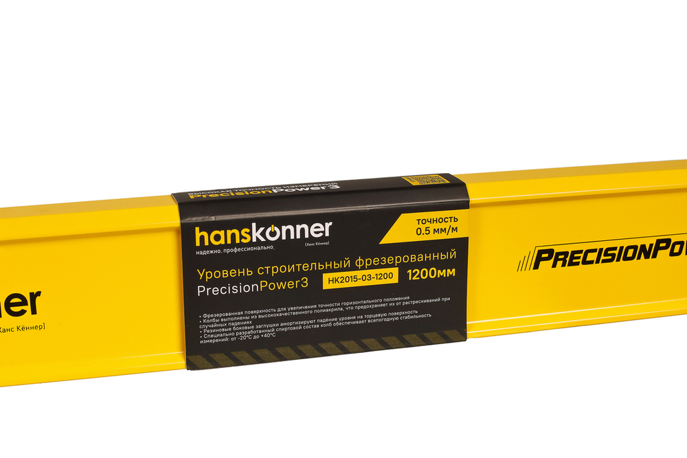 Уровень алюм., 1200мм, 2 колбы, фрезерованный, точность 0.5 мм/м, hanskonner HK2015-03-1200 — фрезерованная поверхность для увеличения точности горизонтального положения.