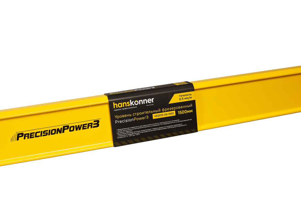 Уровень алюм., 1500мм, 2 колбы, фрезерованный, точность 0.5 мм/м, hanskonner HK2015-03-1500 — фрезерованная поверхность для увеличения точности горизонтального положения.