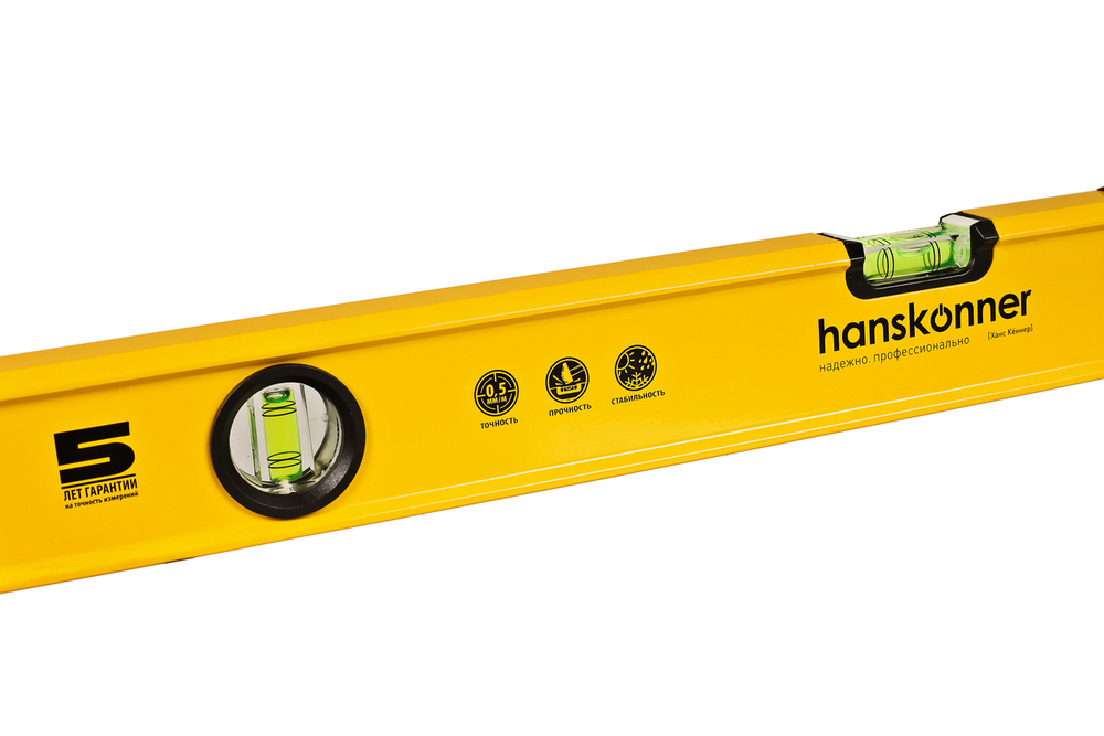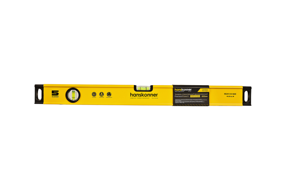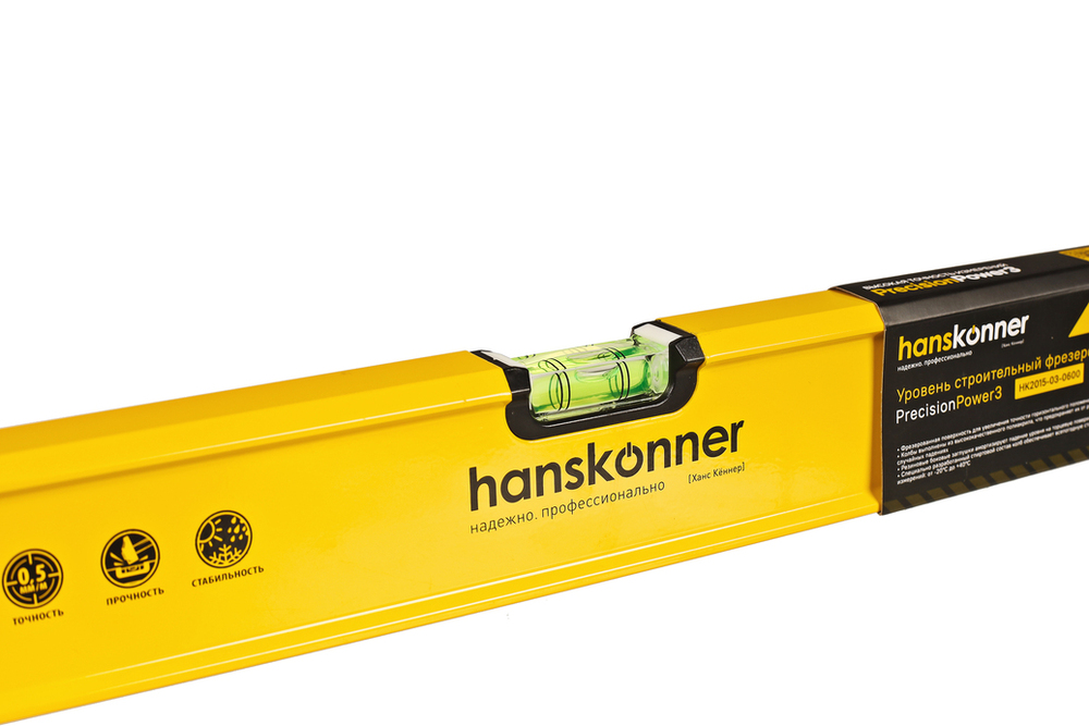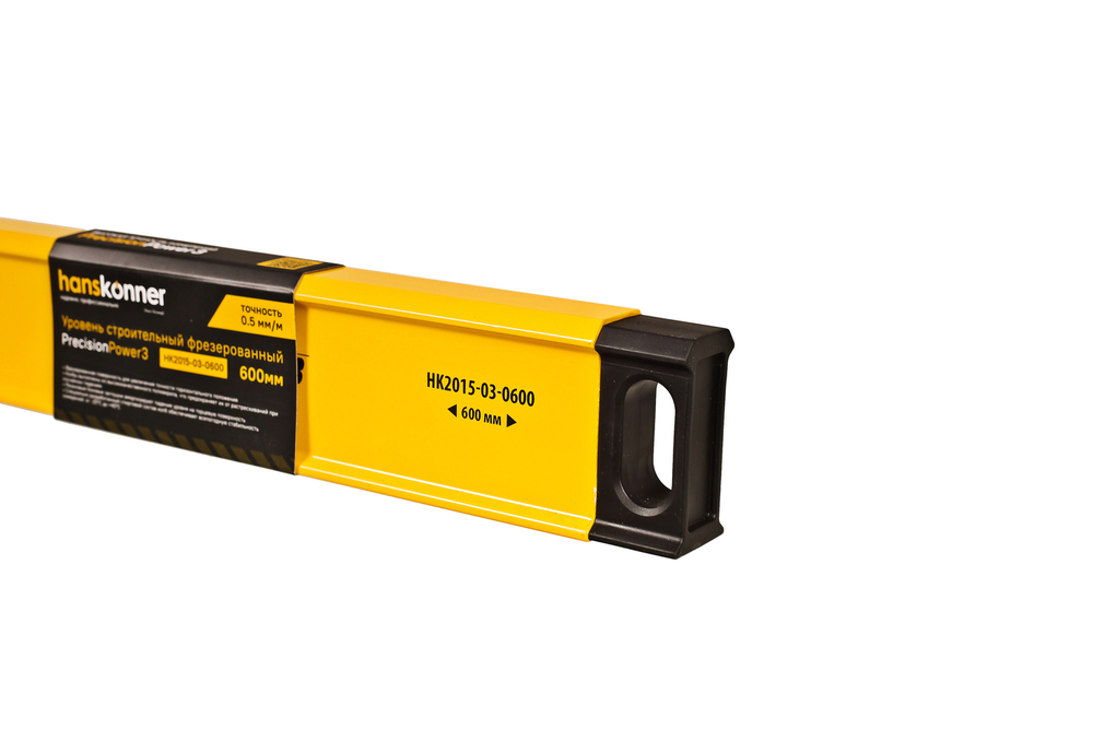 Уровень алюм., 600мм, 2 колбы, фрезерованный, точность 0.5 мм/м, hanskonner HK2015-03-0600 — фрезерованная поверхность для увеличения точности горизонтального положения.