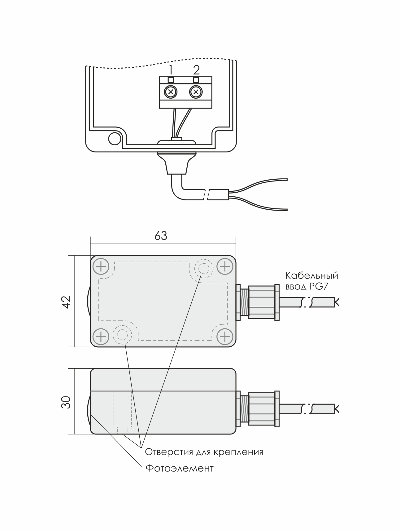 Монтаж на плоскость. Для преобразования в электрический сигнал уровня освещенности в контролируемом пространстве, формирует сигналы, управляющие работой фотореле (светочувствительные автоматы).