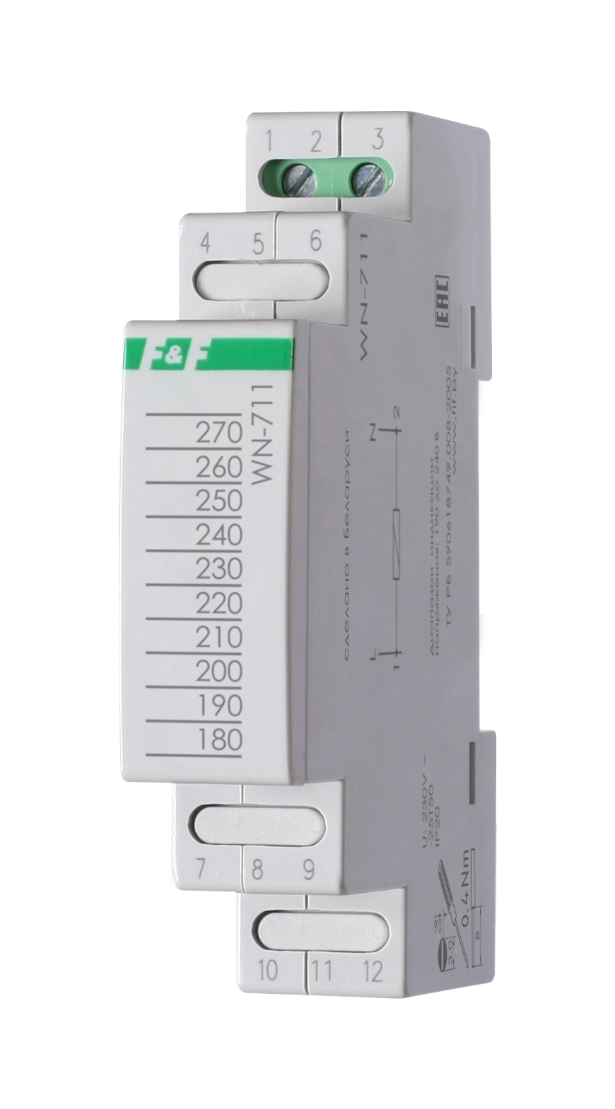 Монтаж на DIN-рейку. Для измерения и отображения на светодиодной шкале величины напряжения в однофазной сети переменного тока.