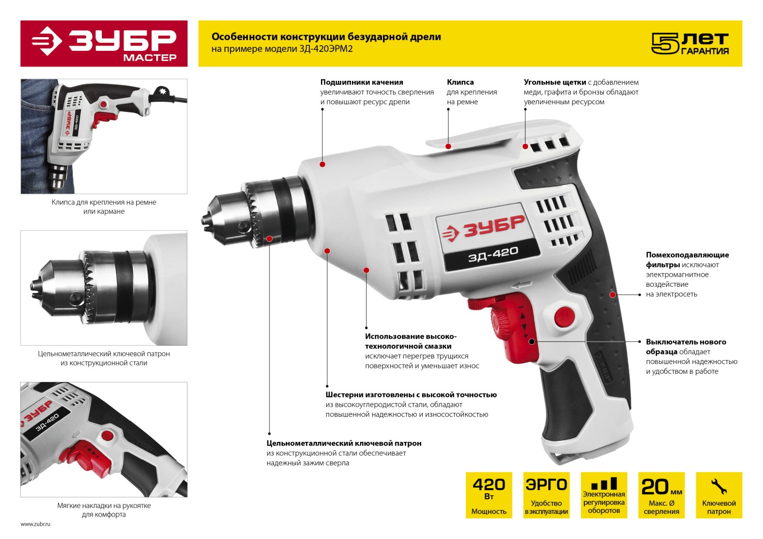 Характеристики ЗУБР ЗД-420ЭРМ2: