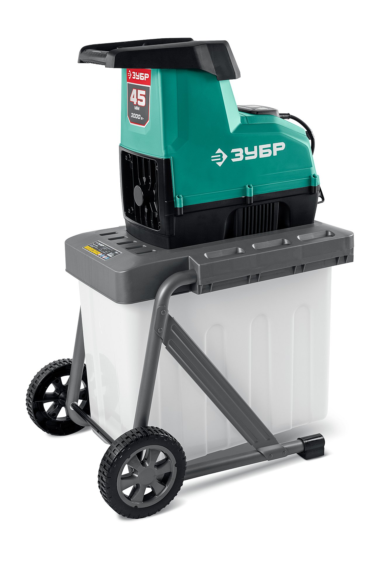 Измельчитель садовый ЗУБР 3000 Вт, электрический ЗИЭ-45-3000 — мощный, бесшумный и высокопроизводительный измельчитель для эффективной переработки растительных отходов на участке.