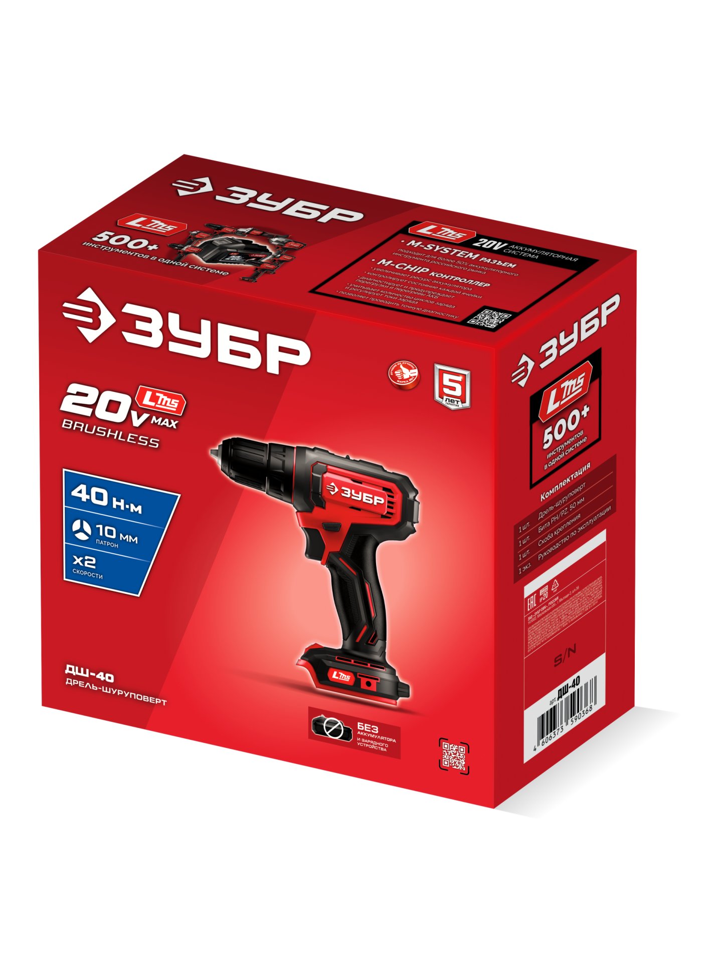 Дрель-шуруповерт ЗУБР 20 В, 40 Н·м, без АКБ (LMS) ДШ-40 - предназначена для сверления отверстий в различных материалах (при установке соответствующих сверл), закручивания/откручивания резьбовых соединений (при установке соответствующих бит), перемешивания ЛКМ (при установке соответствующих насадок).
