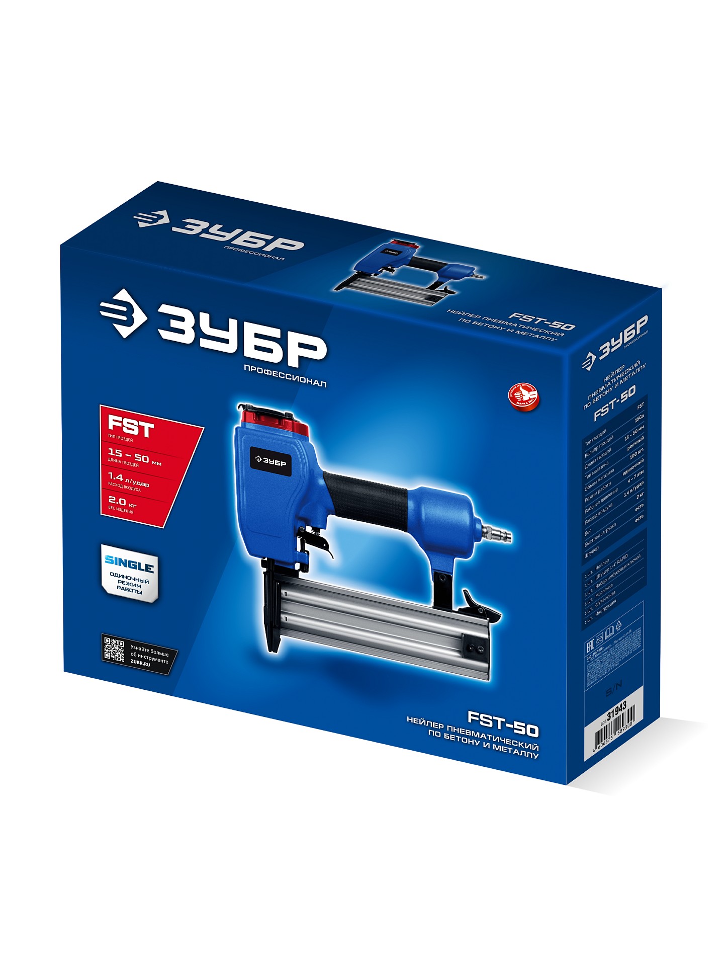 Нейлер (гвоздезабиватель) пневматический ЗУБР FST-50, предназначен для крепления различных тонких листовых материалов к бетону.