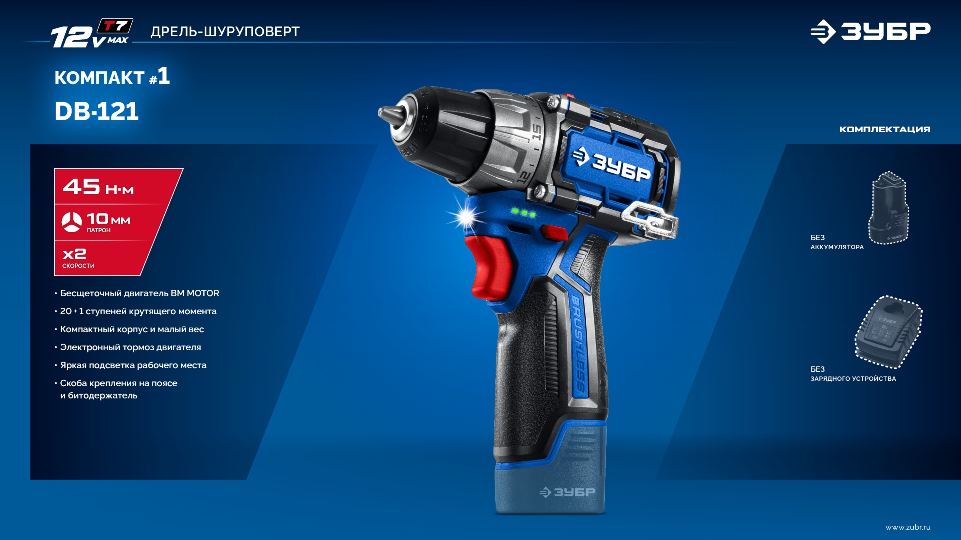Характеристики ЗУБР DB-121: